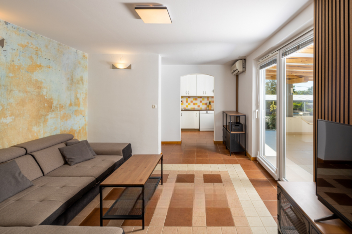 Starte deinen Tag mit einem Sprung ins kühle Nass – das Erdgeschoss bietet unmittelbaren Zugang zur Poolterrasse und zum gepflegten Garten.